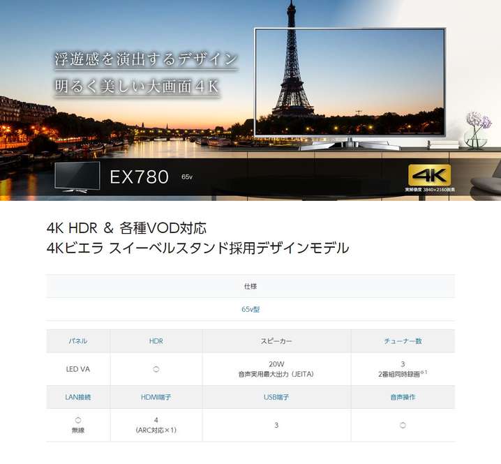 ●ハイビジョン対応 : 4K対応