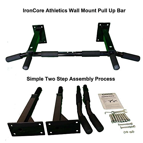 IRON CORE ATHLETICS WALL MOUNT PULL UP BAR - HEAVY DUTY WALL MOUNTED PULL-UP / CHIN UP BAR - FOUR MOUNTING BOLTS ON EACH SIDE FOR SECURE MOUNTING STRENGTH