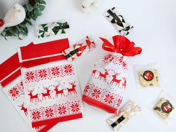 Name: 10 red Christmas drawstring bags
