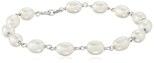 Coordinating necklace, bracelet, and drop earrings crafted from sterling silver links studded with cultured pearls