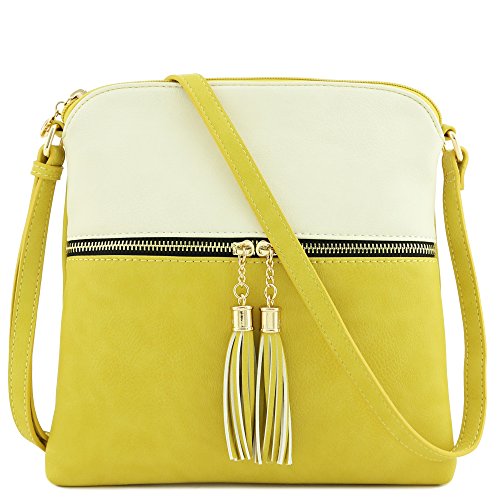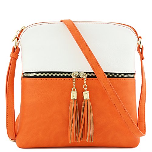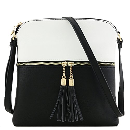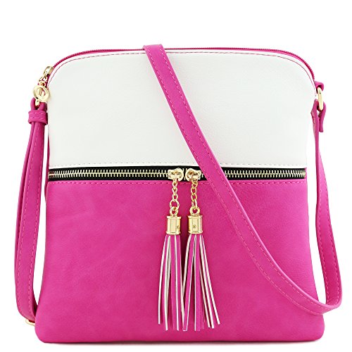 This tassel accent medium/large size crossbody bag makes easy to organize your everyday items.