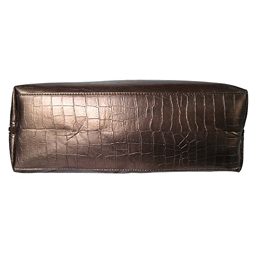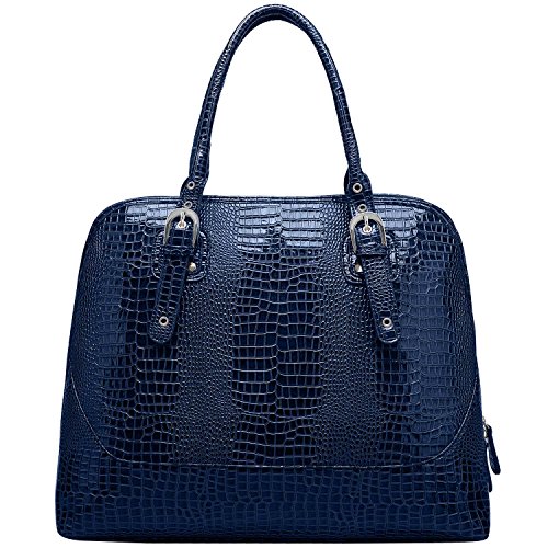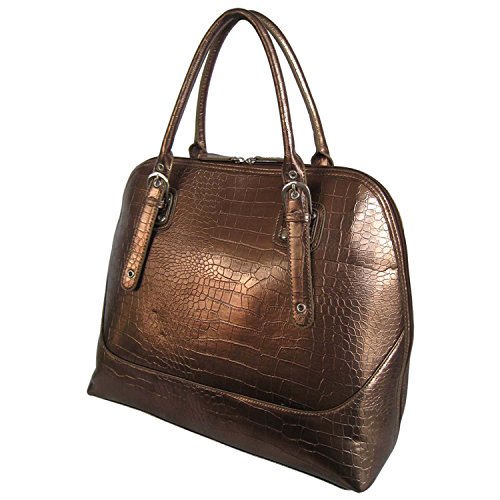 -. Feature : Made of Shiny Crocodile Embossed Genuine Leather with dual carrying adjustable handles for comfortable wear. / Dual Top Zippered Opening and backside exterior zippered pocket featuring durable, smooth-gliding and easy-to-pull metal zipper. / Featuring main center zippered compartment that allows to access separate compartments which are capable of storing all essential accessories like cosmetics, sunglasses, with one wall zippered pocket inside, one slip pocket, one cell phone pouch and 3 pen holder pockets. / Silver Tone Hardware - Chrome Side Rings attached on the edge of the handles for sturdiness. / Quilted computer pocket with high density padded foam inside which provides a protective cushion to accommodate 13 inch laptop, digital e-reader, I-pad, etc.