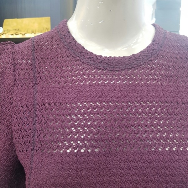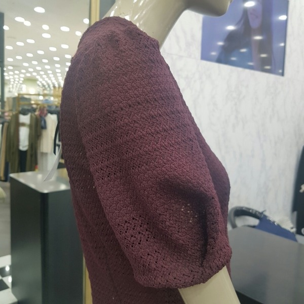 니트 소재의 블라우스로 퍼프 소매가 여성스러움을 주는 신축성 좋은 블라우스입니다