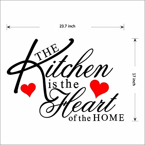 -. Title : Witkey The Kitchen is the Heart of the Home Red Heart Wall Decal Sticker Art Mural Home Décor Quote DIY