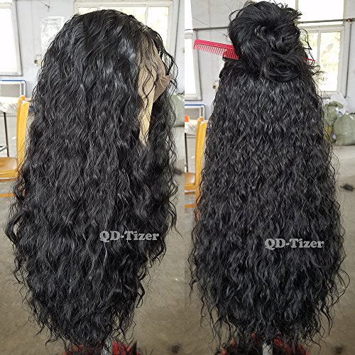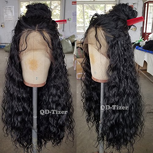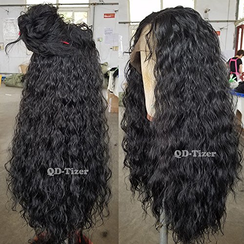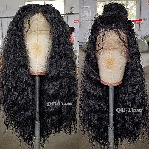 QD-Tizer 180 Density Long Loose Curly Synthetic Lace Front Wigs Black Color Hair for Fashion Women