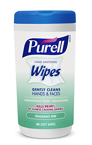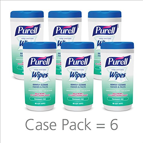 Purell 9121-06-CMR Hand Sanitizing Wipes, Fragrance Free, 40 Count Canister (Pack of 6)