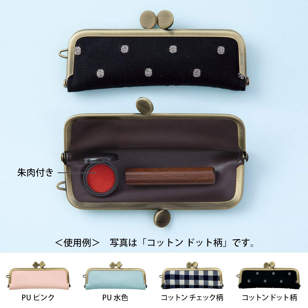 大人の女性のためのシンプルで機能的な小物雑貨シリーズ 素材は汚れにくいPU素材、お花型の口金モチーフがポイントになっています 直径18mm長さ60mmまでの印鑑に対応 朱肉付き 【サイズ】H55×W125×D18mm(三角カン含まず)