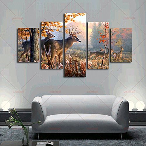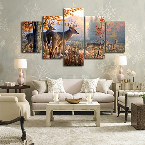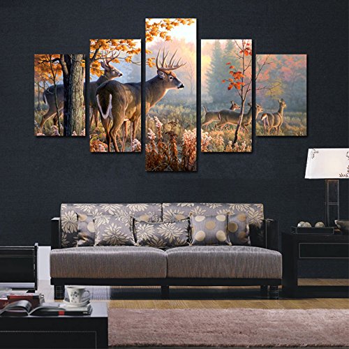 -. Title : JuYi Art HD Painting Canvas P.R.Ints for Home Decoration, Stretched- 5 pcs Deer Picture P.R.Int on Canvas- Modern Home Decor Wall Art ( No Framed )