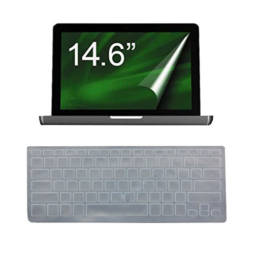 -. Feature : Clear Keyboard Skin is available for backlights to go through / Electrostatic Adsorption (Non-glue): Self-adhering film attaches itself to the screen. No residue leaves on your LCD display when you remove it / Anti-Scratch & Anti-FingerP.R.Ints: With 4H hardness and special treatment, the protector is with superior performance to prevent scratch and fingerP.R.Ints / Waterproof and dustproof, protect your keyboard against everyday spills (coffee/beer/milk), dust (crumbs/powder), liquid, pet's pees or other incidents / Item Package Quantity: 1 x Silicone Keyboard Cover & 1x Anti-glare Screen Protector 14.6-inch