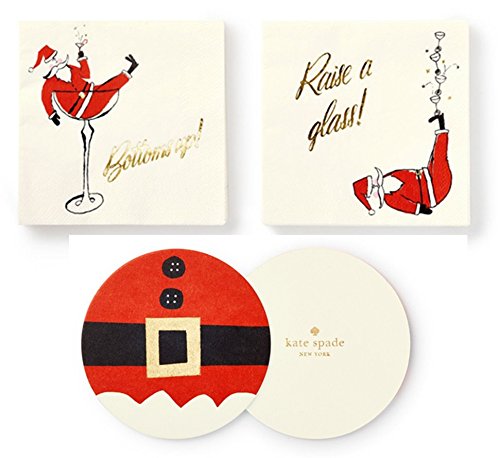 Studio : Kate Spade New York Publisher : Kate Spade New York Binding : Health and Beauty Product Description Get the Holiday party started with this set of 20 Cocktail napkins and 12 Coasters by Kate Spade New York. Bright and colorful, Jolly Santa "Raise a Glass Bottoms up!" napkins and Santa Suit Coasters are perfect for any Holiday get-together. Your guests will feel instantly comfortable while letting their hair down and Raising their glasses. Cheers! Set of 20 Napkins, 10 each design and Set of 12 heavy paper Coasters. 0