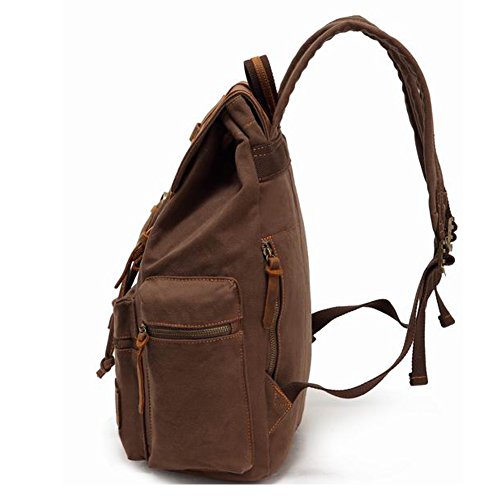 -. Feature : DESIGN: Retro Dual leather straps with adjustment buckles, antique finish brass metal buckles 4 zipper outside pockets(1 front,2 side,1 back).1 laptop pocket and several little pockets insideWith flexible adjustment button,you can adjust the length of the shoulder straps easily. / INTERNAL STRUCTURE: computer pocket, cell phone bag, sandwich zipper bag, document bag, zipper pocket / MATERIAL: canvas+ Crazy Horse Leather / SIZE:17.7"(H)x"12.6(L)x8"(W);Shoulder strap, length: 17.7-35.4in(Adjustable) / APPLICATION:The canvas is of superior quality, easy to wash and dry and resistant to wear and tear. The colours are suitable for both formal and non-formal occasions for everyone.