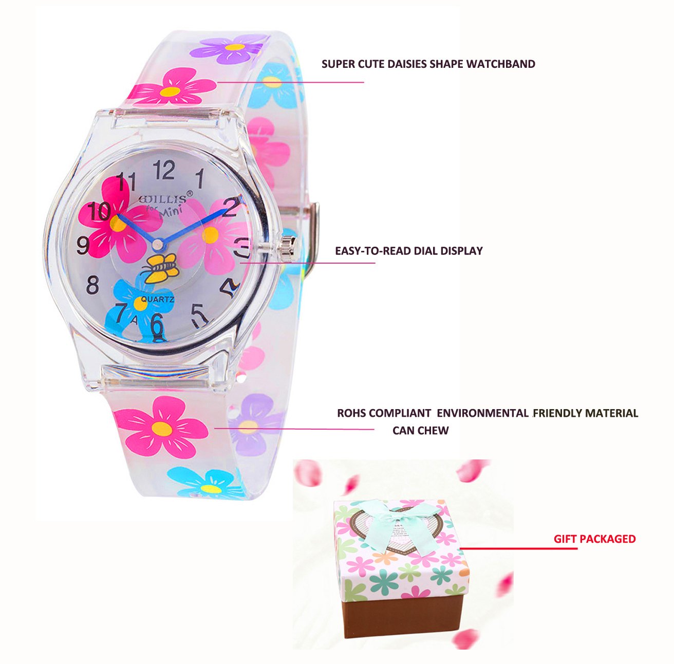 Girls Kids Watches Children's Girls Schoolgirls Student Children's Watches Watches (3 Floral Patterns)