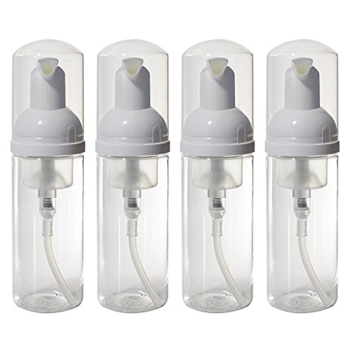 Clear PET Plastic Refillable Travel Foamer Pump Bottle - 1.7 oz (4 Pack) + Travel Bag