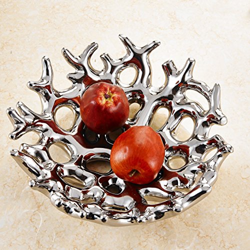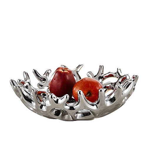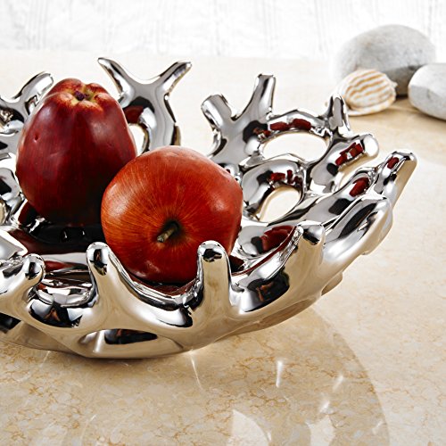Pure.Lifestyle - Electroplated Polished Chrome Silver Ceramic Mesh Shape Fruit Bowl