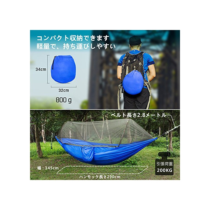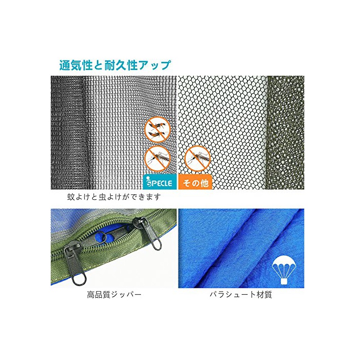 원본상품명: iSPECLE ハンモック パラシュ?ト 自立式モスキ?トネット ハンモック 蚊帳 耐荷重200KG ?量 コンパクト?納 風通し 折?み 固定ロ?プ ?用ベルト カラビナ付き キャンプ アウトドア