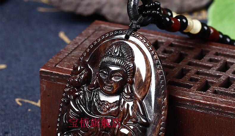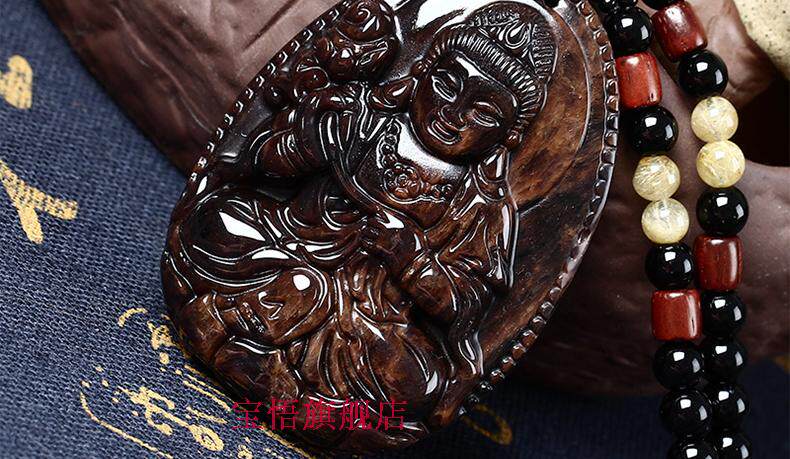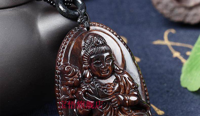开光天然红竹石金丝红曜石大势至菩萨吊坠生肖属马守护神本命佛