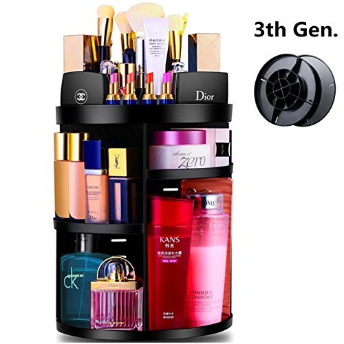 Maxkim 360-Degree Rotating Makeup Organizer, Adjustable Multi-Function Cosmetic Storage Unit, Compact Size with Large Capacity, Fits Different Types of Cosmetics and Accessories(Black)