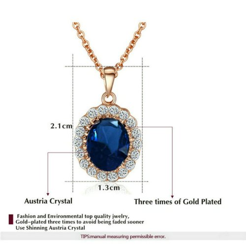 - Feature : This set is Kate Middleton Diana Style. Beautifully crafted oval ruby sparkles gracefully. A circle of clear crystals around it with a shining gloss. The set is 18k rose gold plated. / It's a perfect accessory to your outfit or as an excellent gift for anniversaries, graduations, birthdays, or just as a surprise to remind that special someone how much you care. / The chain is about 15.7'' long. The necklace pendant size is 0.5''*0.8'', the earring size is 0.5''*0.4''. / Shipped out in an exquisite jewelry gift box. Delivery time 7-15 days. / One year warranty to ensure you a perfect shopping experience.
