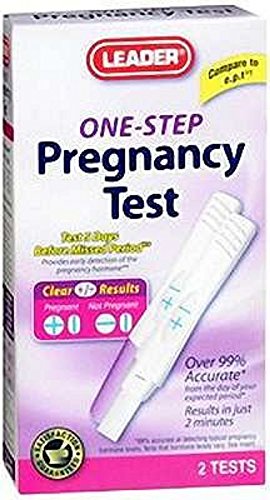 -. Feature : Leader Pregnancy Test One Step 2 CT (PACK OF 4) / Results in two minutes / Over 99% accurate from the day of the expected period / Test five days before missed period provides early detection of the pregnancy hormone