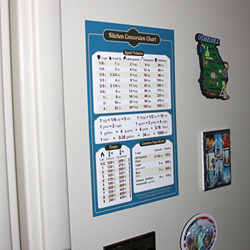 Magnetic Kitchen Conversion Chart - 5.5" x 8.5" - Convenient Table Of Key Measurement Conversions for Cooking