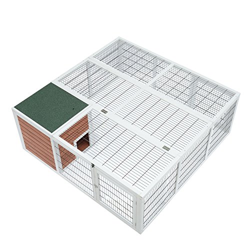 -. Binding : Misc. -. Brand : Pawhut -. EAN : 0842525103053 -. Feature : Comfortable wooden run with extra-large space for rabbits and other small animals / Top can be opened and closed for easy access to the inside / Tight wire spacing for protection from predators / Weather resistant fir wood material / Water resistant composite asphalt roof -. Label : Pawhut -. Manufacturer : Pawhut -. Model : D51-043 -. MPN : D51-043 -. PackageQuantity : 1 -. PartNumber : D51-043 -. ProductGroup : Pet Products -. ProductTypeName : PET_SUPPLIES -. Publisher : Pawhut -. Studio : Pawhut -. Title : Pawhut 64” Wooden Outdoor Rabbit Hutch with Run and Mesh Cover - Black/Brown/White -. UPC : 842525103053
