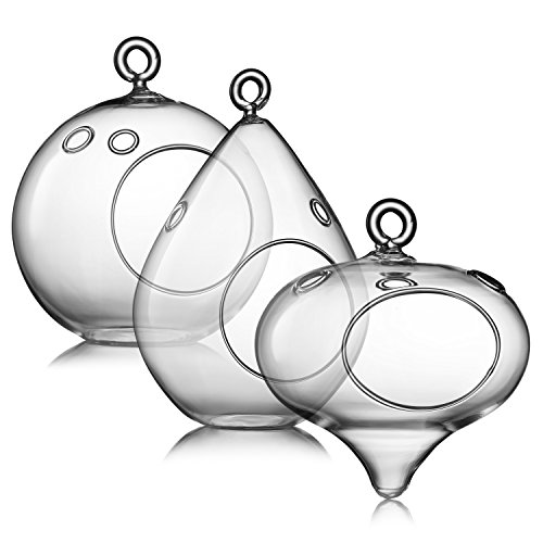 - 3 Clear Glass Hanging Terrarium Orb /Tear Heart Shaped Votive / Tealight Candle Holder . Or For Plants, 2.5 X 2.5 Inch Opening . 4.5 Tall X 4.5 Wide, Inch { Tear 6.5 Inch Tall }