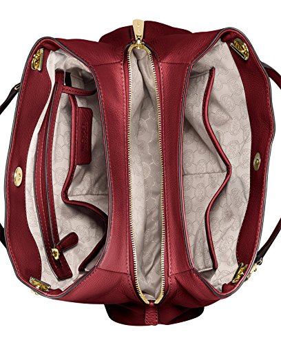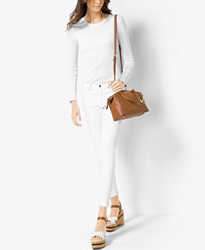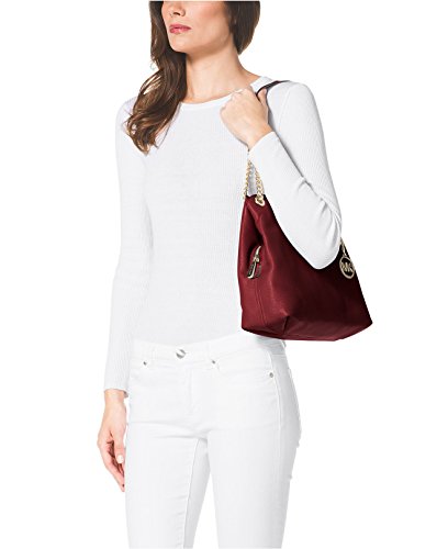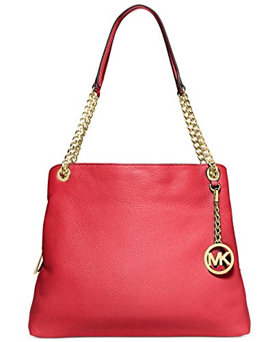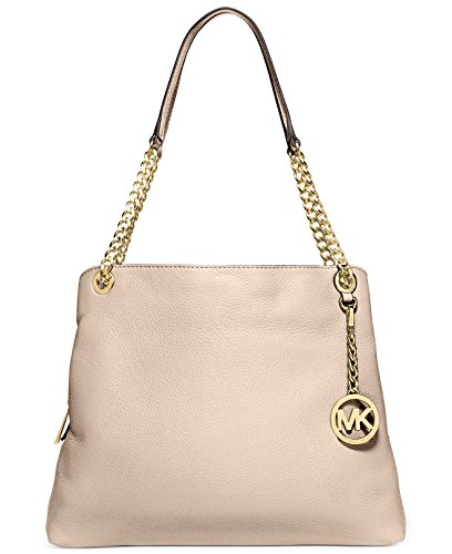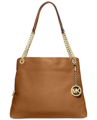 Product Description Elegant chain-link accents and a hanging logo charm add a touch of class to this chic and spacious leather shoulder tote from MICHAEL Michael Kors. Leather; lining: polyester 15-1/2" W x 8" H x 4-1/2" D 10"L double handles Magnetic snap closure Gold- or silver-tone exterior hardware and hanging logo medallion 1 interior center zip compartment, 1 zip pocket 4 slip pockets Laptop compatible (std. size 13"-15") 0