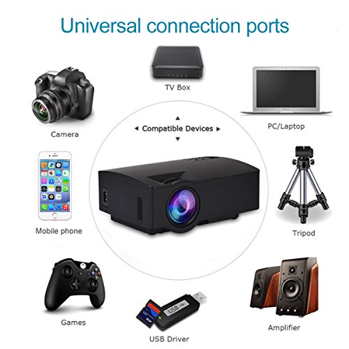 Portable projector with small size. is suitable for traveling, camping and outdoor party. Enjoy happy movie or football match after family dinner or BBQ Party at home or courtyard. Be easy to share sweet pictures for your families and friends.
