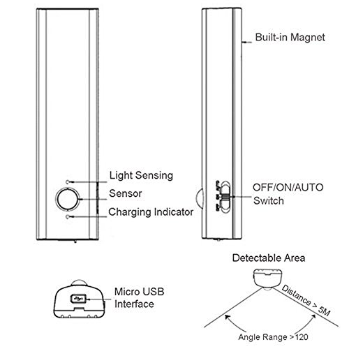 ● Usage Time: The longest standby time is 5 months with fully charged. The longest lasting time of ON Switch is 4-5 hours. According to light on times, please charge it every 1-2 mouths on AUTO Switch.