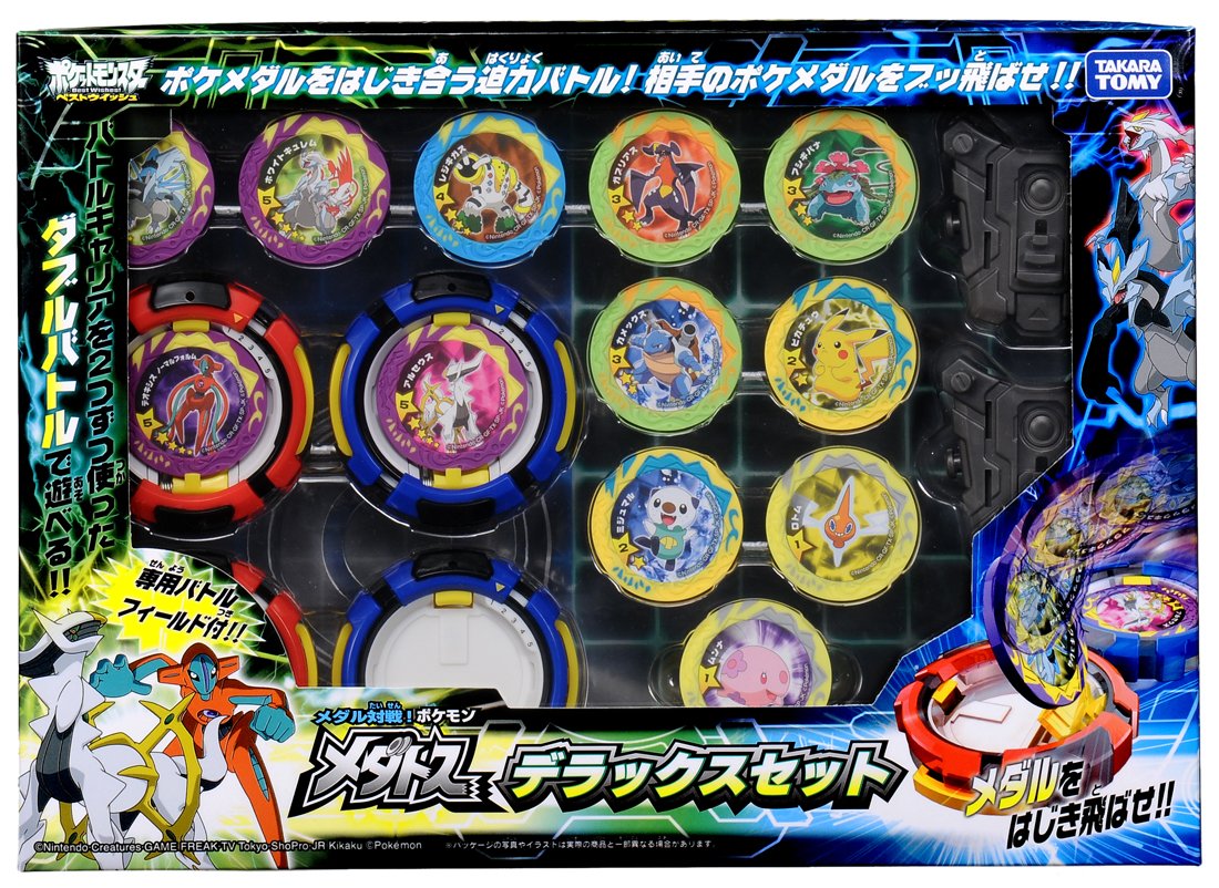 An exhilarating battle game in which medals are set on the carrier and bumped and bounced off! Pokemon's strength makes it possible to rotate the career, making medals harder to flip.