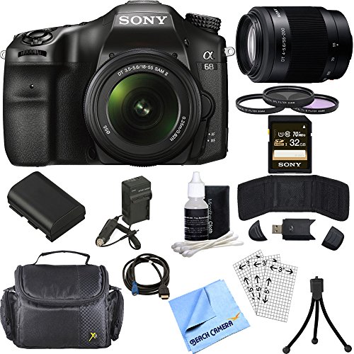 Sony ILCA68K/B a68 A-Mount Digital Camera 18-55mm + 55-200mm Lens Bundle includes ILCA68/B Camera, 18-55mm + 55-200mm Zoom Lenses, 55mm Filter Kit, 32GB SDHC Memory Card, Beach Camera Cloth and More!