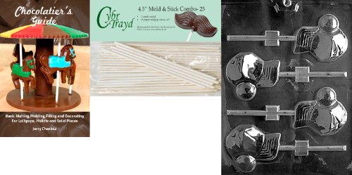 Cybrtrayd 'Cap and Ball Lolly' Sports Chocolate Candy Mold with 25 4.5-Inch Lollipop Sticks and Chocolatier's Guide