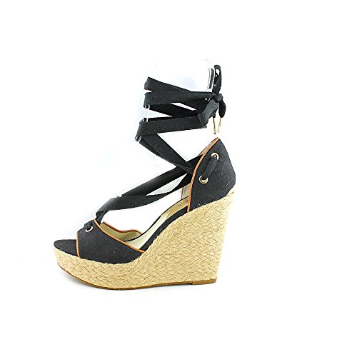 MICHAEL Michael KorsTM Lilah Wedge! Canvas upper with leather trim. Lace-up ankle closure. Open-toe, espadrille silhouette. Signature logo hardware detail. Leather lining and footbed. Jute-wrapped platform wedge. Rubber sole. ImportedFeature