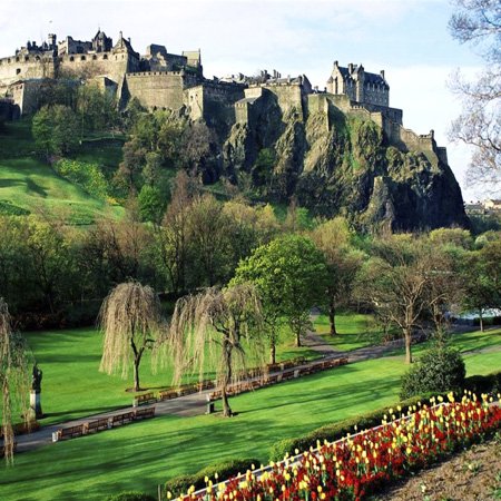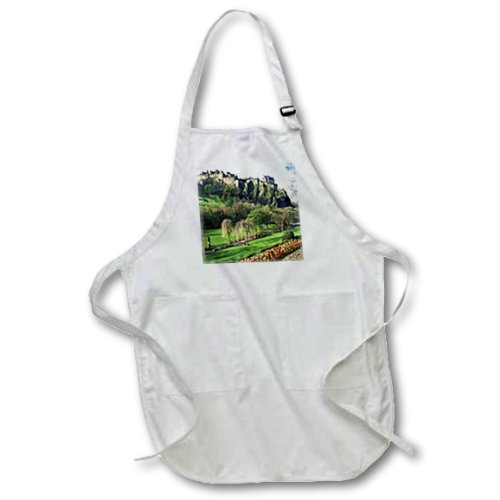 3dRose apr_54126_1 Castle in Edinburgh Scotland-Full Length White Apron with Pockets, 22 by 30-Inch