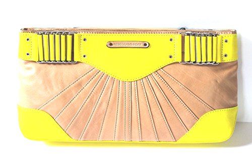 -. Brand : Rebecca Minkoff -. Color : Yellow, Tan -. Department : womens -. EAN : 0846632186688 -. Feature : Magnetic closure / Raised stitch details / Leather covered chain-link details at top / Embossed designer logo at front / Fully lined interior with a zip pocket and a slip pocket -. Model : 20UECBBS12 -. PackageQuantity : 1 -. ProductGroup : Shoes -. ProductTypeName : HANDBAG -. Size : Large -. Title : Rebecca Minkoff Yellow and Tan Park Ave Clutch -. UPC : 846632186688