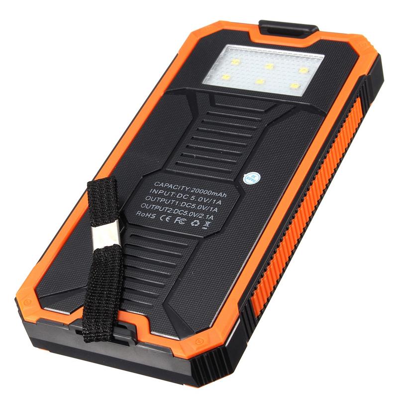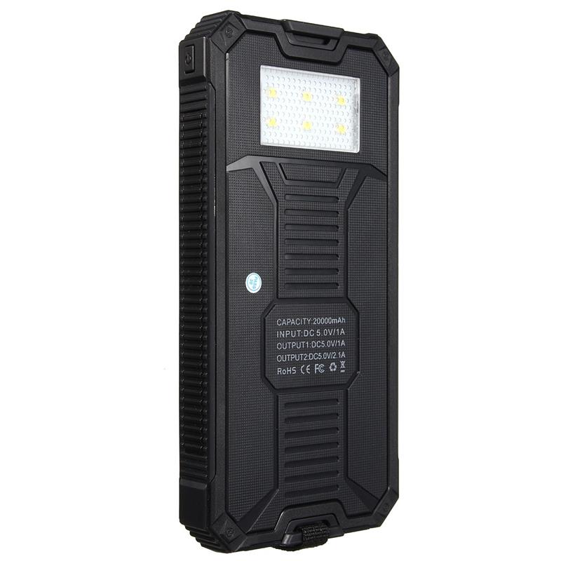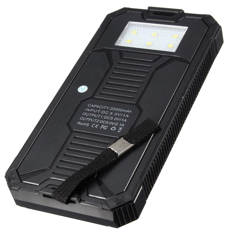 20000mAh Portable Dual USB Port Solar Power Bank External Backup Charger Battery Powerbank Power Supply