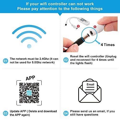 - 1.Wifi Controller - Remote control, Smart phone control, Timer mode, You can also make the lights lighting with the rhythm of music in your Smart Phone, By using 1 App to control many wifi controllers at the same time. More unlikely, You can remotely control the lights when you go out and let your pet feel warm when you can not go home.