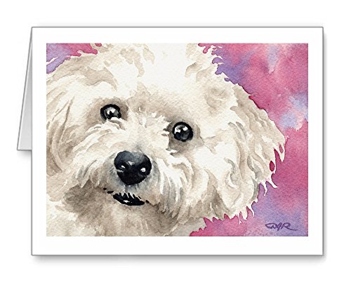 -. Feature : Bichon Frise artwork by watercolor artist DJ Rogers. / Note card size is 4.25 x 5.5 inches / Matching white envelopes included. / Note cards are blank inside for your personal message. / Suitable for framing.