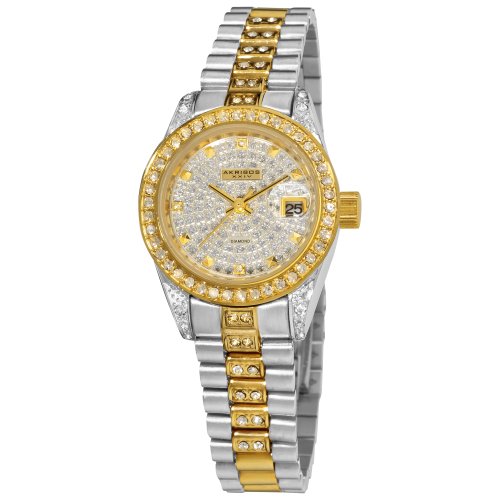 -. Title : Akribos XXIV Women's AK487TTG Diamond Quartz Gold Two-Tone Stainless Steel Bracelet Watch