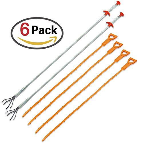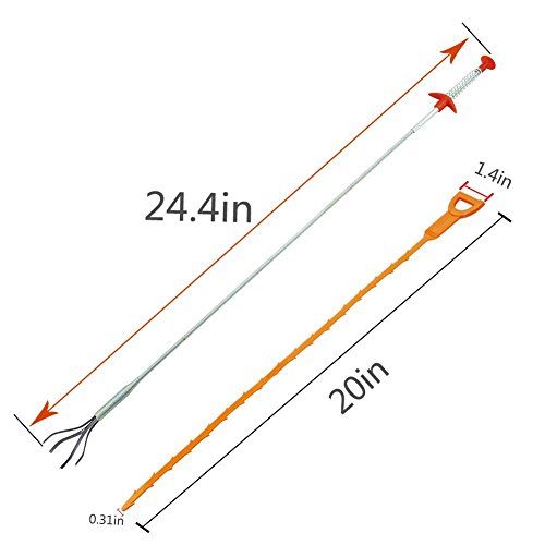 This Drain and snake set is for quick and Painless Slow-Drain Relief for Drain Cleaning. Offers two cleaning tools, a tool that can capture a solid obstruction, another tool hook the hair and debris.