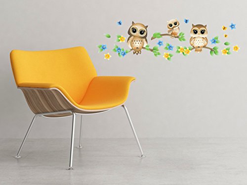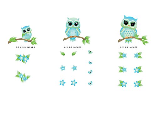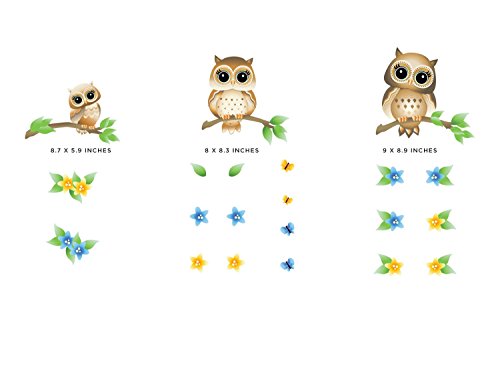 -. Feature : SAFE FOR KIDS. MADE IN USA - Kid friendly and proudly made in the USA. Our premium fabric wall decals are made from non-toxic materials and eco-solvent inks that will not shrink, curl, stretch, or tear easily. Non-toxic, Phthalates free, BPA free, PVC free / HIGH QUALITY FABRIC WALL DECALS - High quality fabric decals are thicker, more durable, and more opaque than traditional vinyl so they will pop on any wall color. Will work on virtually any non-porous surface including textured walls / MADE TO ORDER - Made to order and each item is worked on by hand. Quick and easy to apply. Just peel and stick with no extra tools needed / REMOVABLE AND REUSABLE - Will pull apart if it turns in and sticks to itself and will not easily tear. Repositionable and reusable many times over. / PRODUCT DIMENSIONS - Owl 1 (with branch) - 8.7" x 5.9", Owl 2 (with branch) - 8" x 8.3", Owl 3 (with branch) - 9" x 8.9". Comes with 4 Buttlerflies and 14 Flowers. Matte finish looks like a painted mural on your wall and leaves no sticky residue