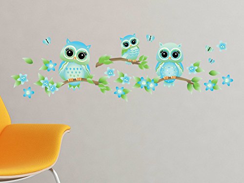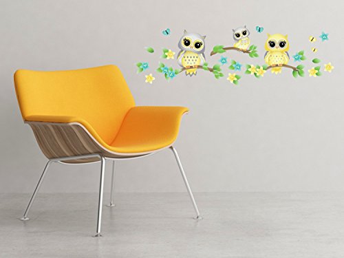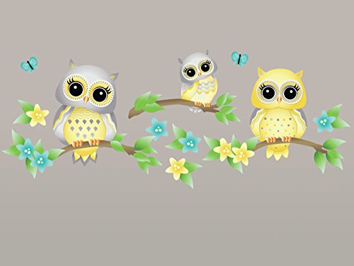 -. Title : Owls on Branches Fabric Wall Decal - Set of 3 Owls on Tree Branches with Flowers and Butterflies - 4 Color Options - Non-Toxic, Reusable, Repositionable