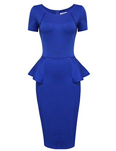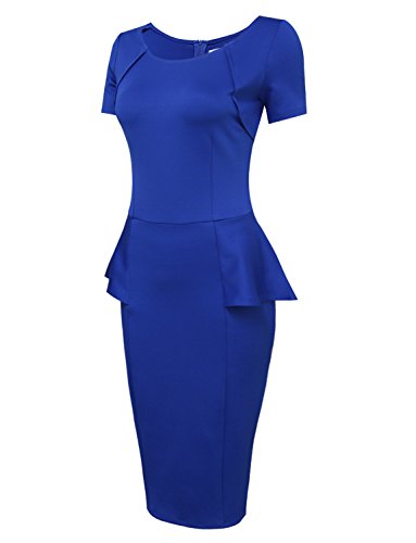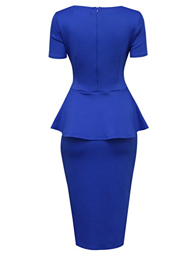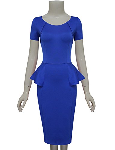 Title : Tom's Ware Women Short Sleeve Zip Up Peplum Midi Dress TWLC6156-BLUE-US M
