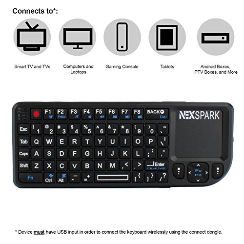 NEXspark Mira UM1 Ultra Mini Keyboard + Touchpad, Wireless USB Connect with Comfort Grip + Rechargeable Battery, Compatible with TVs, PCs, Game Consoles, Tablets, Android Boxes, IPTV Players