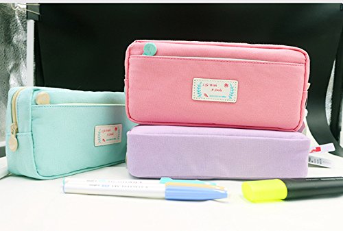 Samaz Canvas Pen Bag Pencil Case, Multi-function Big Capacity Pencil Bag Stationary Case Makeup Cosmetic Bag