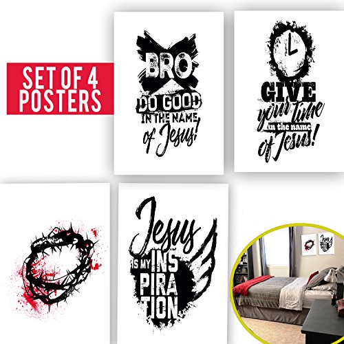 Limited Edition: BRO Set Of Four 11X17 - Spiritual Wall Decor With Quotes About of Bible! Black & White Poster Arts for Christians, Office Decor For Minister & Pastor Gifts! 1MM Thick Cardboard!
