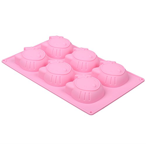 Ebake Reusable Cartoon Silicone Mold for Cake, Chocolate, Jelly, Candy and Ice cubes (Kitty, Pink)
