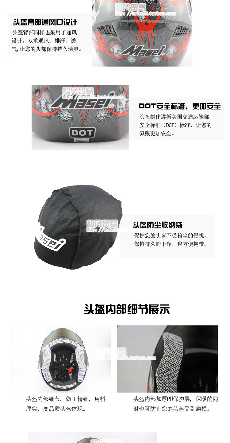 正品Masei玛星儿头盔 骑士摩托车电瓶车3/4头盔半盔 安全帽头盔