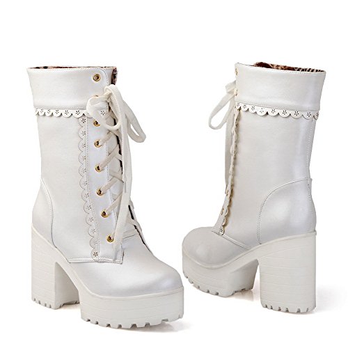 - Title : Maymeenth Womens Closed Round Toe High Heels Short Plush Solid Boots with Bandage and Hollow Out