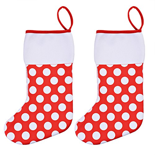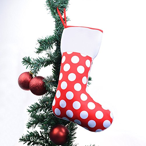 Kloud City Pack of 2 Neoprene Christmas Stocking Polka Dot 11” Large Candy Gift Bag Christmas Hanging Ornament for Mantel Door Fireplace Window Décor